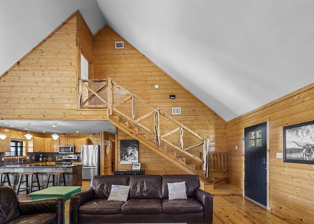 combination tub/shower, double, king, queen, shower, toilet, tub, twin/ single, autumn foliage, caves, churches, restaurants, Dining, Satellite / Cable, Smart TV, Air Conditioning, Clothes Dryer, Fireplace, Heating, Internet, Linens Provided, Living Room, Parking, Washing Machine, Fire pit, Wifi, Coffee Maker, Dishes & Utensils, Dishwasher, Kitchen, Microwave, Oven, Refrigerator, Stove, Toaster, Dining Table, Kitchen Island, antiquing, bird watching, photography, scenic drives, sight seeing, walking, ATM/bank, groceries, medical services, Mountain View, River, Balcony, Hot Tub, Private Pool, bedroom, full, studio, fishing, golf, hiking, hunting, swimming, water tubing, children welcome, non smoking only, Minimum Age Limit for Renters, flexible, Family, Outdoor lighting, Deadbolt lock on entryway, Smoke detectors, Carbon monoxide detector, Emergency phone number: Medical, Emergency phone number: Police, Emergency phone number: Fire, Enhanced cleaning practices, Clean with disinfectant, No-contact check-in and check-out, High touch surfaces cleaned with disinfectant, Towels and bedding washed in water that's at least 60sC/140sF